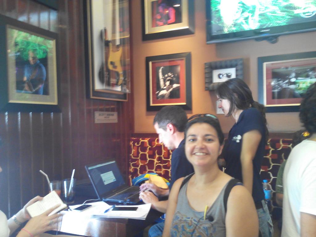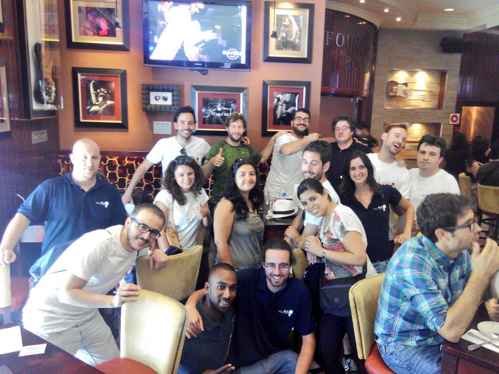 15:00 Mientras sigue el recuento toca foto de equipo. Muchas gracias a los retados y resto de voluntarios de ACA que han hecho posible que la yinkana de hoy haya sido un éxito. También gracias al Hard Rock Café por cedernos un espacio para centralizar las operaciones.